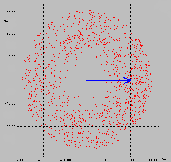 Az embrionális fejlődés során bizonyos sejtek hosszú vándorlás után más sejtekkel összekapcsolódva a későbbi szervek felépüléséhez szükséges sejtcsoportosulásokat alakítanak ki. Fontos feladat ezen folyamatok mechanizmusának megértése. Embrionális neuroektodermából származó tenyészeteken vizsgálható, vajon a sejtcsoportok kialakulásában szerepe lehet-e a kemotaxisnak. A mérési eredmények feldolgozásakor minden egyes sejt minden egyes elmozdulásakor kiszámítható az, hogy a többi sejt milyen távolságban és az elmozduláshoz képest milyen irányban található. Az összes sejtre vonatkozó eredményt egy koordinátarendszerben (,azaz minden egyes elmozdulást az x -tengely irányába forgatva,) ábrázolva egy felhő kapható (7. ábra).